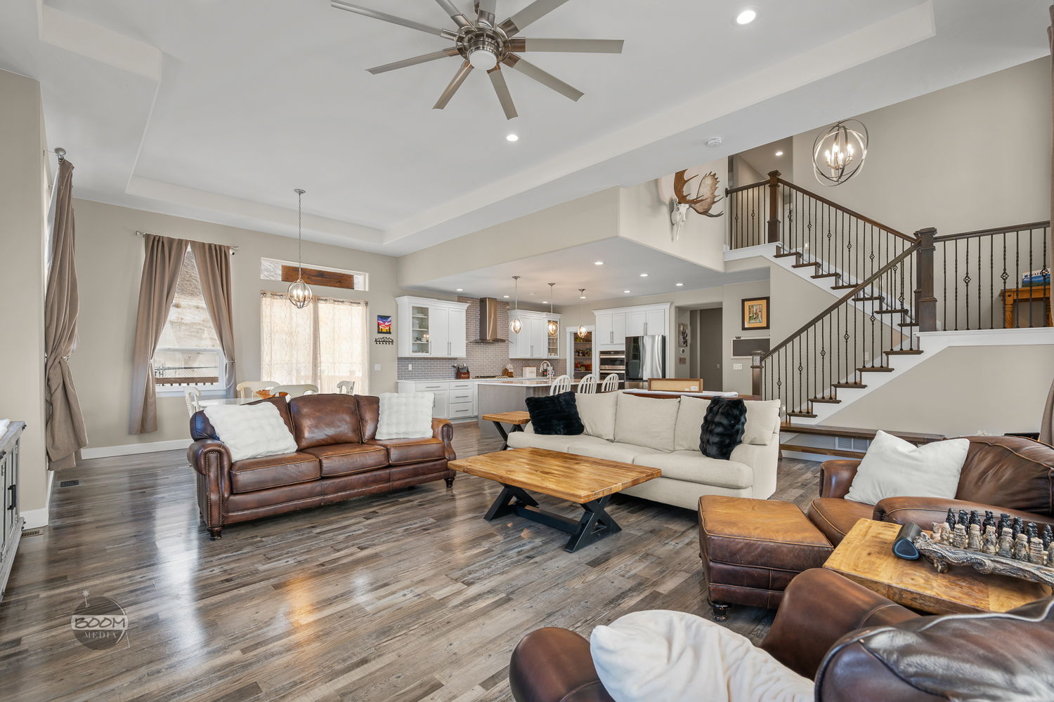 Elegant 2-story entry opens to a light-filled great room with soaring 9-12' ceilings & expansive windows. Impeccably maintained with upscale finishes throughout. Thoughtful layout with main-level bedroom & ¾ bath, plus 3 bedrooms, 2 full baths & laundry upstairs. Primary suite offers unobstructed mountain & wildlife refuge views. Prime commute location.